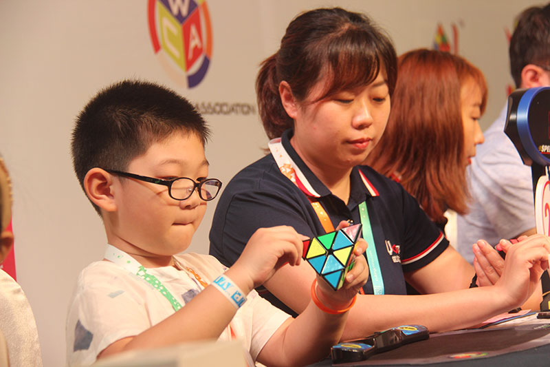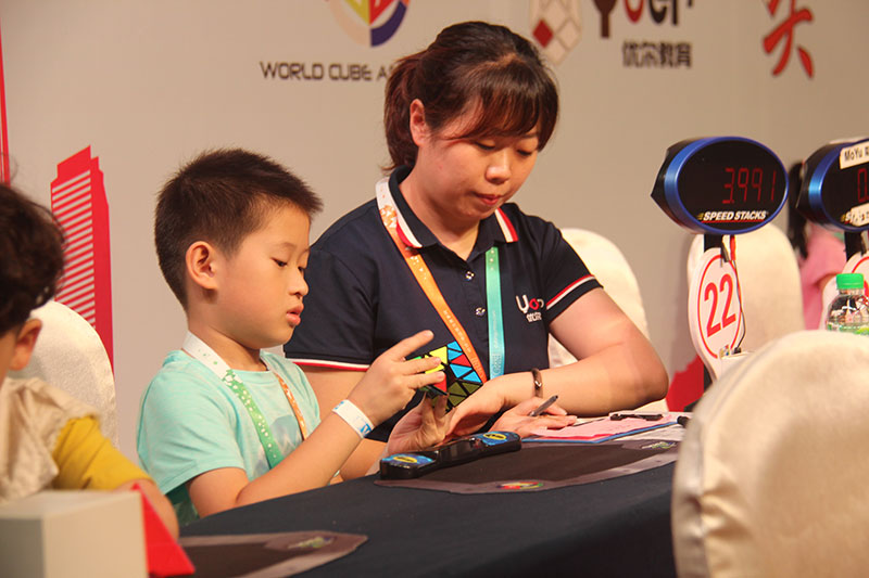 对于优尔来说,WCA公开赛是老朋友,从2010年优尔就开始承办WCA沈阳地区赛事。但是对于一些小朋友来说,这是第一次登上被世界认证的舞台,这是第一次通过魔方在世界上拥有自己ID和排名。年仅8岁的韩业臻在本次比赛上还原三阶魔方仅仅用时7.34秒,二阶魔方的最好成绩为2.12秒!